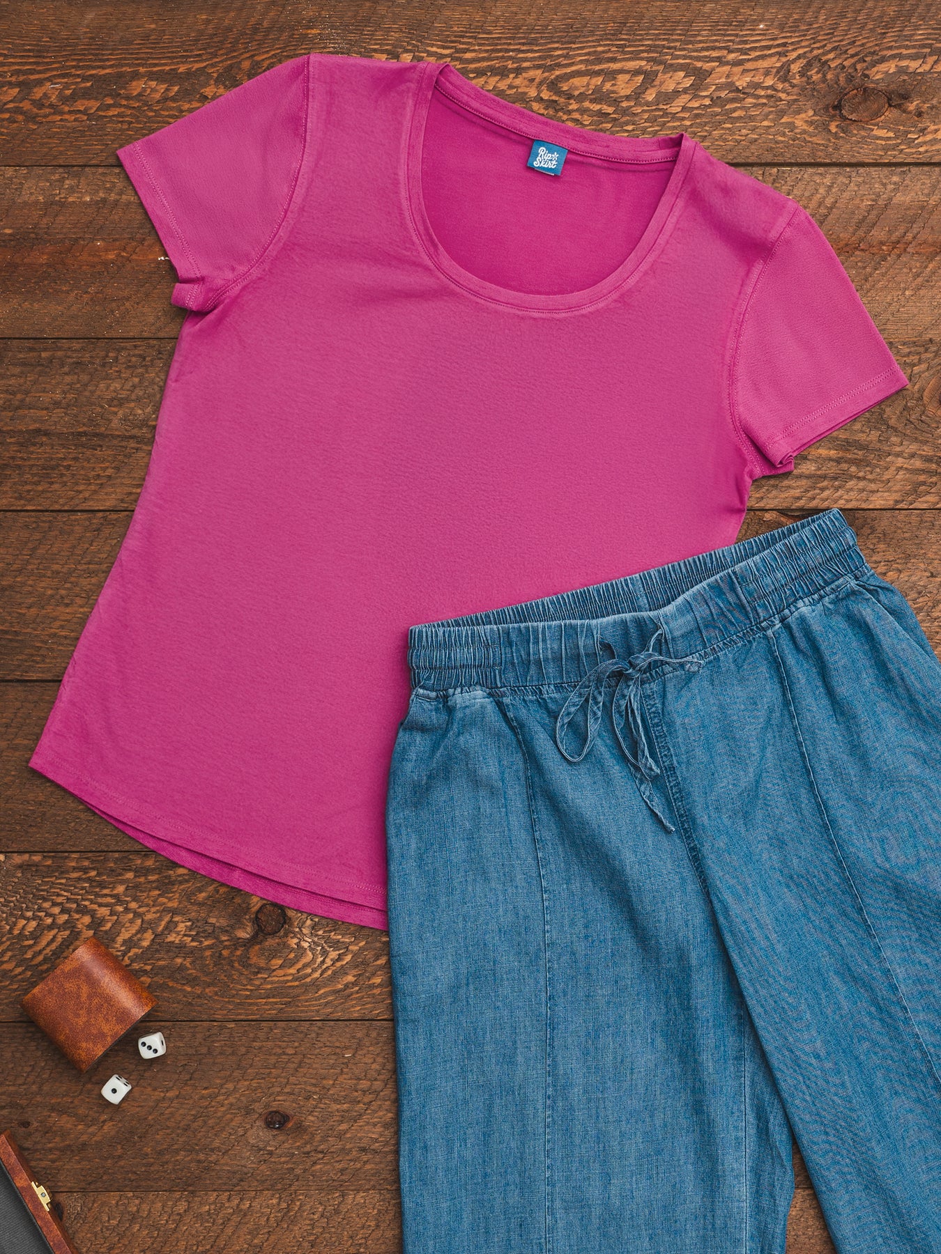 Meet your new everyday essential: the ‘Everyday Tee’—soft as a cloud and effortlessly stylish. Made from our signature bamboo-cotton blend, it’s luxuriously smooth, ultra-breathable, and built to last. The flattering drape glides over your shape without clinging or showing lines, so you stay comfortable and confident from morning to night.
