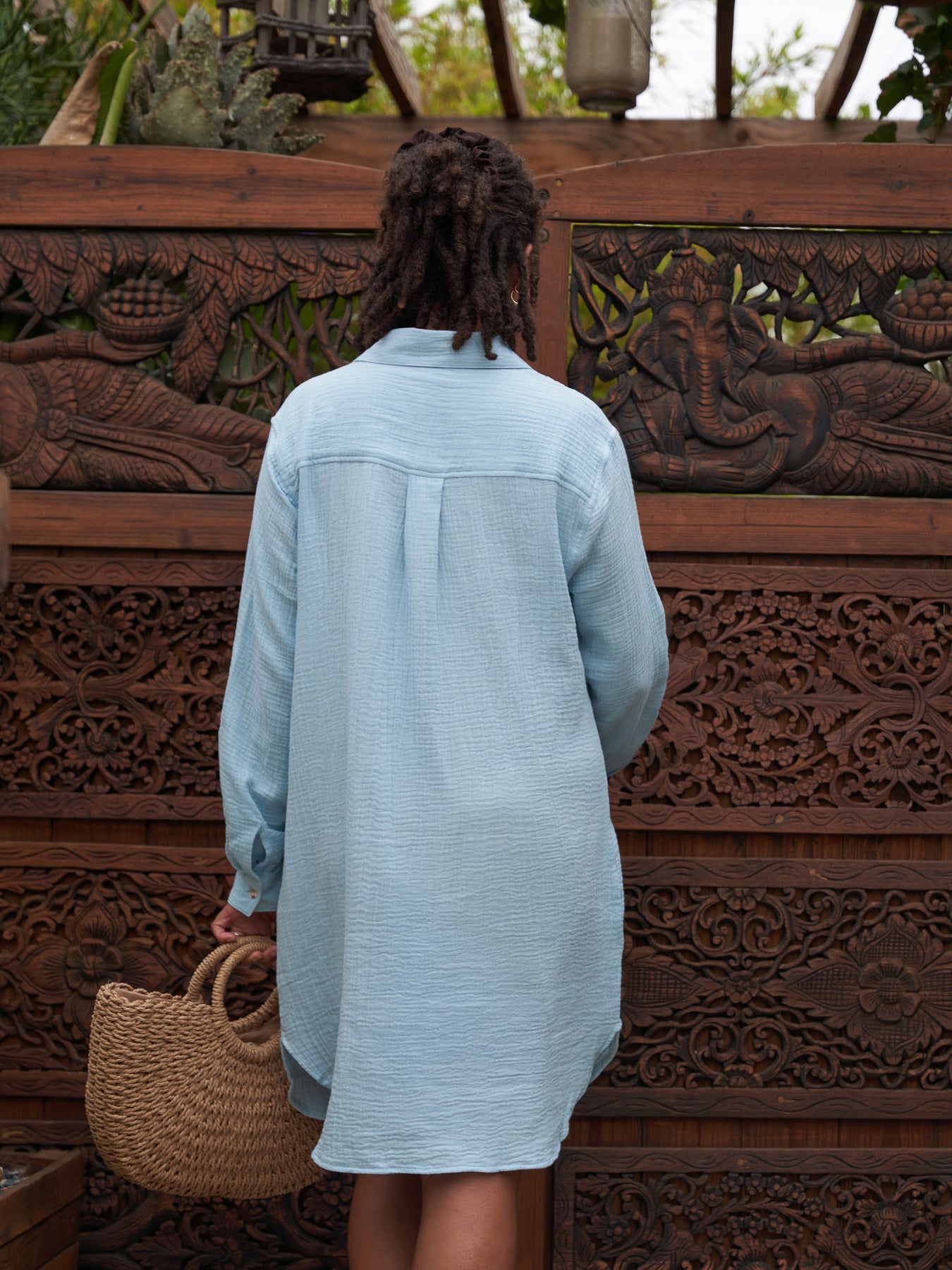 The Travel Dress was designed to be relaxed and comfortable with a slightly boxy fit that is breezy, cool, and flattering. If you prefer a closer to body fit we recommend sizing down. Want more sizing information? Check out our model sizing page!